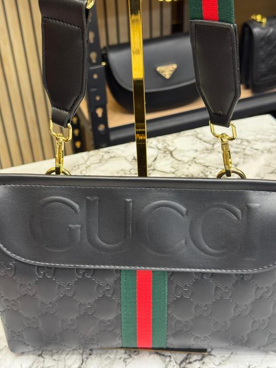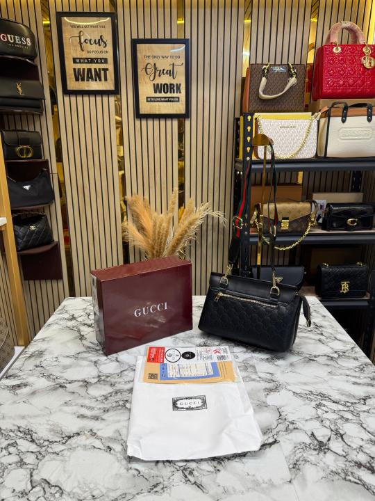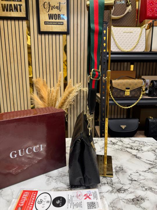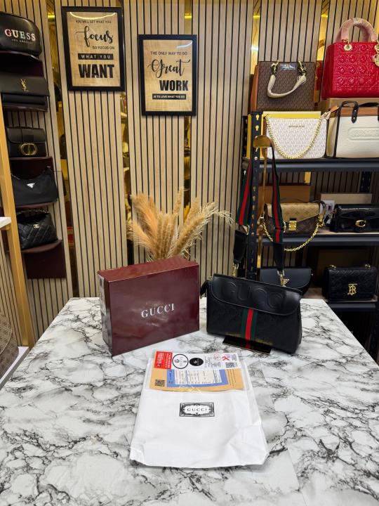 Gucc_i GG Noir With Stripe Mini Shoulder Bag Includes Box & Dust Bag (Black)